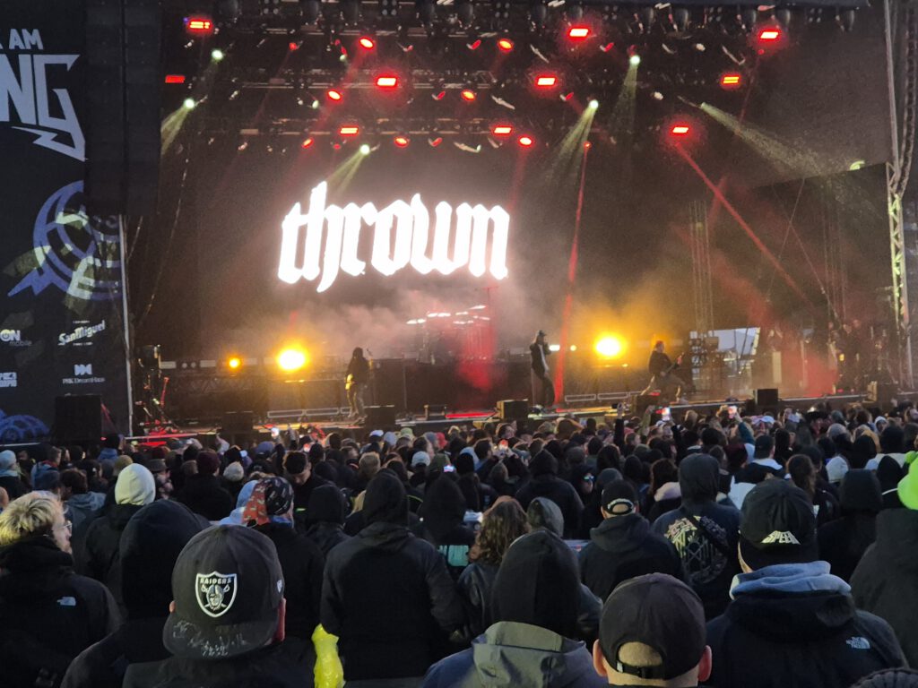 Kurz darauf folgte mein persönlicher Geheimtipp. Thrown aus Schweden. Eigentlich nicht mein klassisches Beuteschema, aber dieser extrem reduzierte, aggressive Sound und die kurzweiligen Songs haben eine Energie, der man sich nicht entziehen kann. Schade nur, dass der Sound am FOH- Turm etwas matschig abgemischt war, zum kollektiven Durchdrehen hat es trotzdem gereicht.